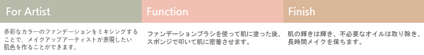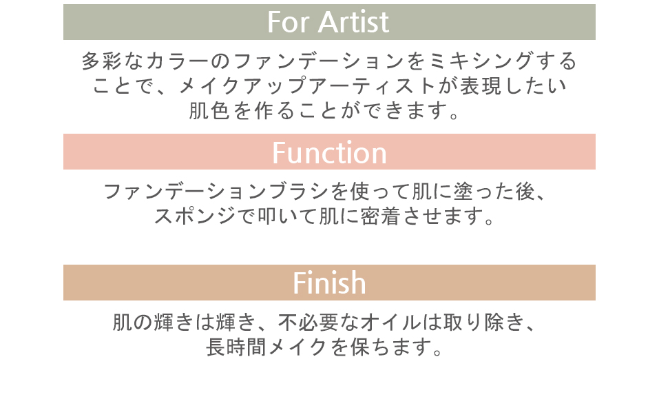 カラーとテクスチャーの異なるファンデーションをミキシングする際にもお使いいただけますのでアーティストにとっては理想的です。