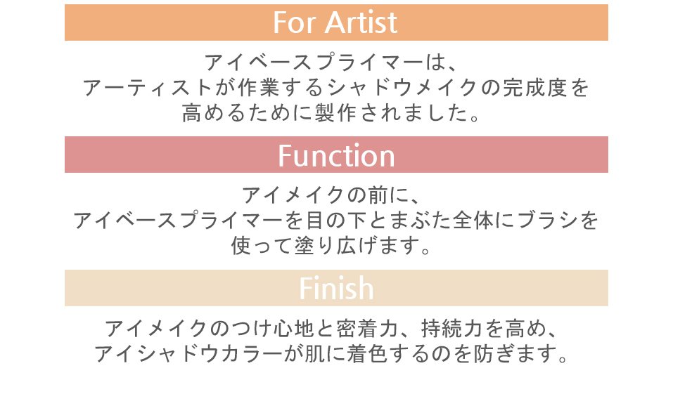 step 04.以降のアイベースプライマーは、目の肌を保護し、長時間アイメイクを維持できるようにサポートします。
