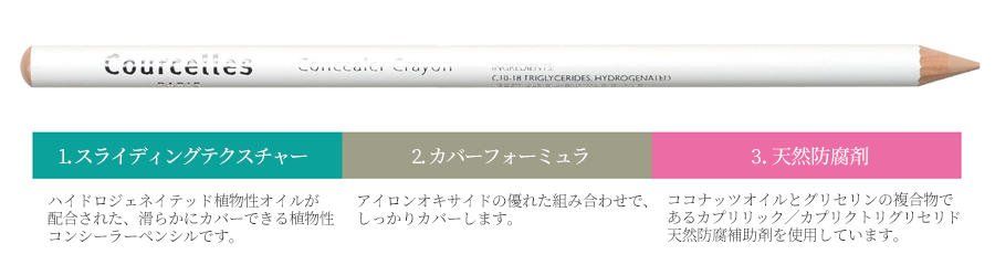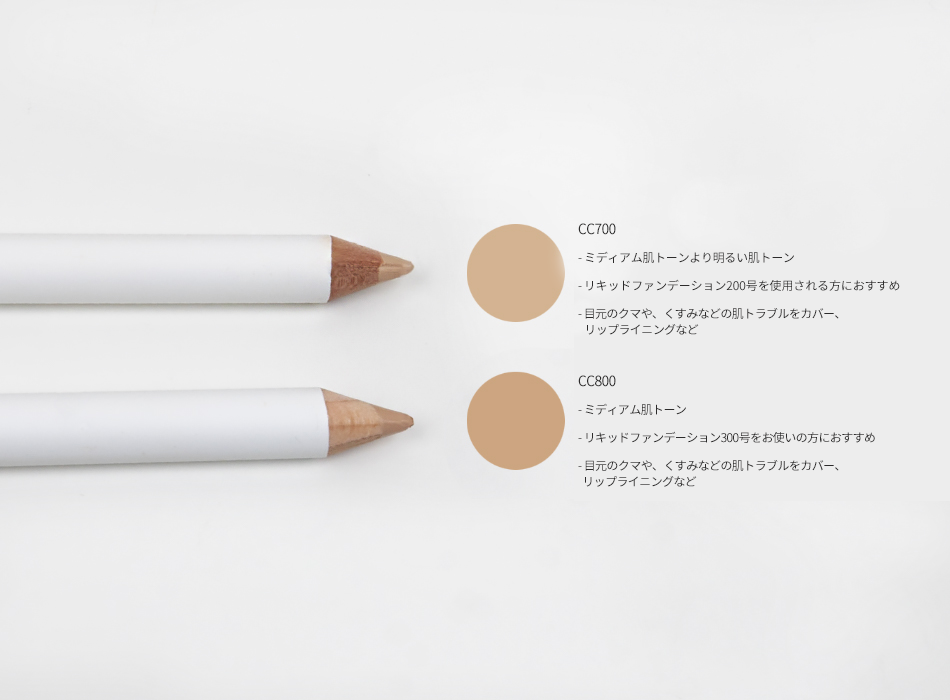Courcelles Pro Concealer Crayon CC700, CC800 - Ingredient TITANIUM DIOXIDE, HYDROGENATED VEGETABLE OIL, C10-18 TRIGLYCERIDES, CAPRYLIC/CAPRIC TRIGLYCERIDE, SYNTHETIC JAPAN WAX, TALC, TOCOPHEROL, ASCORBYL PALMITATE, CI 77492, CI 77491, CI 77499 |